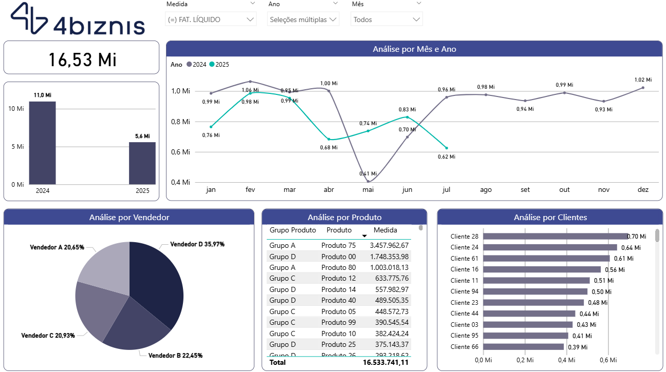 Tenha as informações certas sempre visíveis. Na 4biznis vamos além dos dashboards tradicionais, analisamos cada negócio para que a análise dos dados faça parte da cultura da empresa.